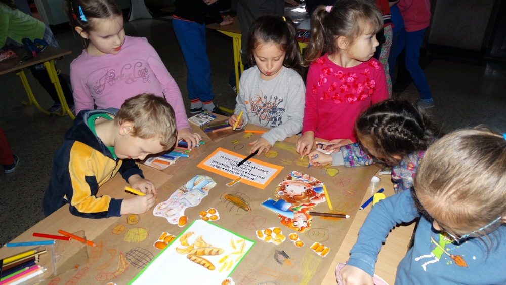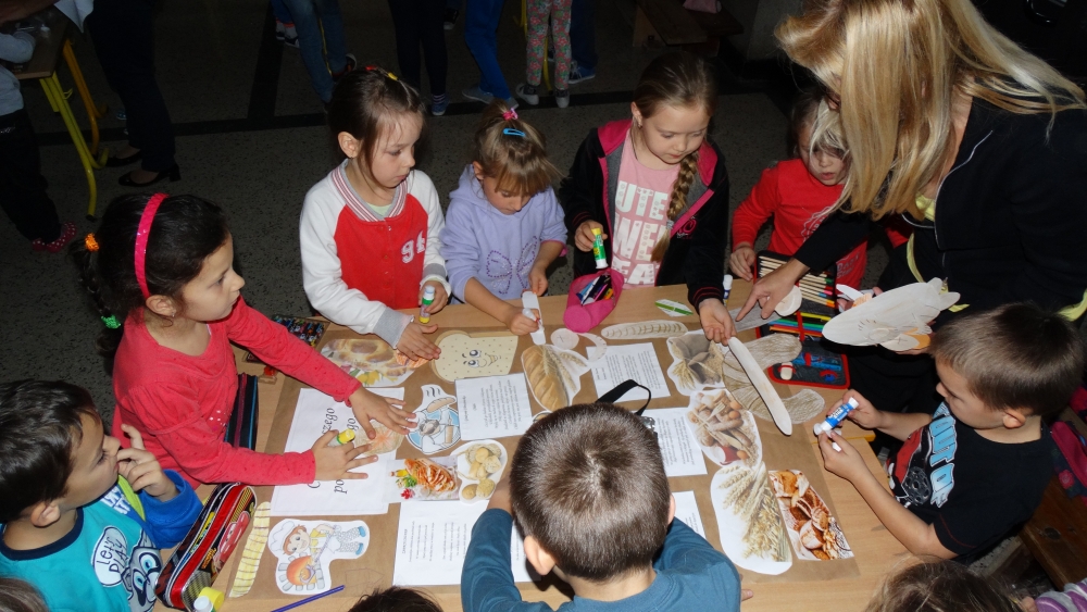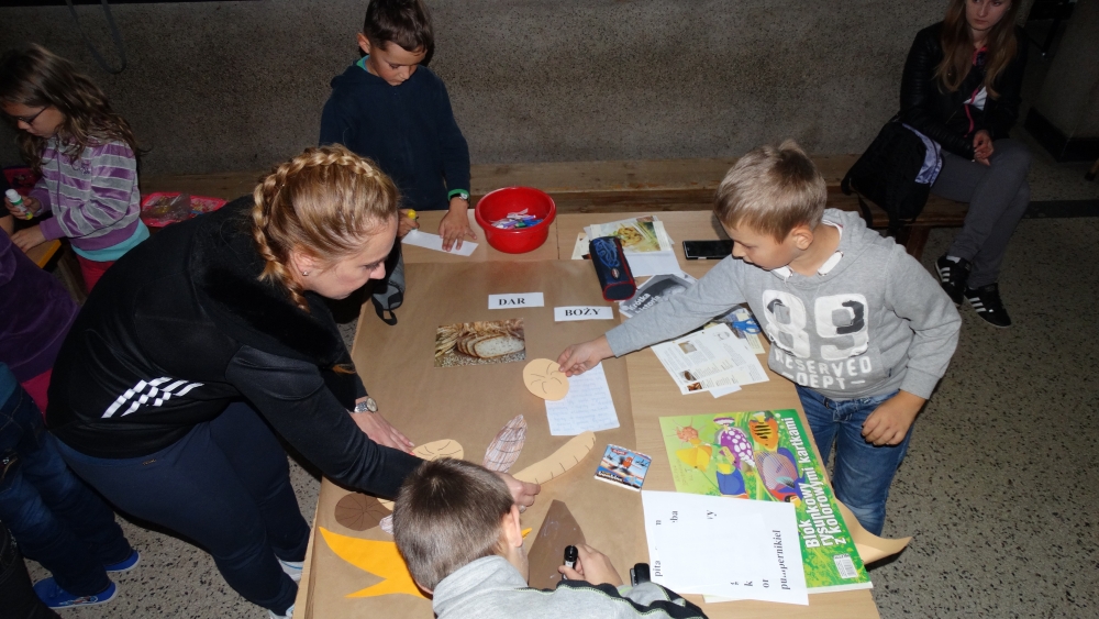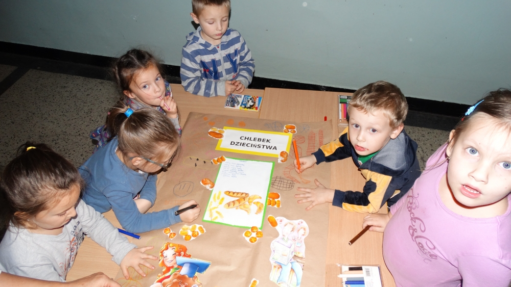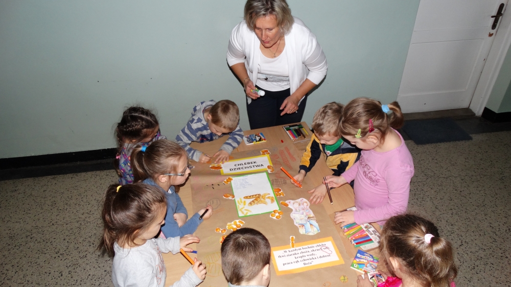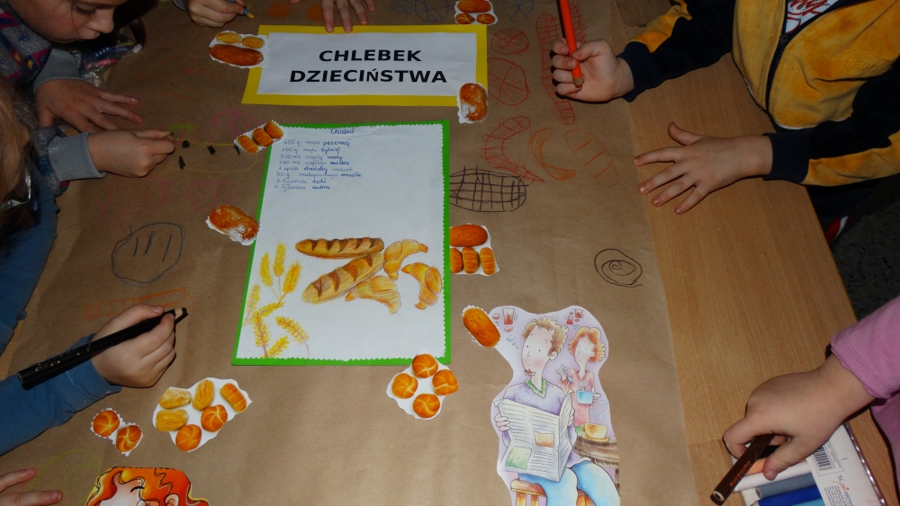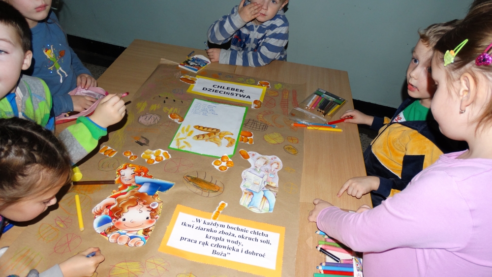 Tato rozdziela bochen cały, aby dzieci po kawałku dostały.