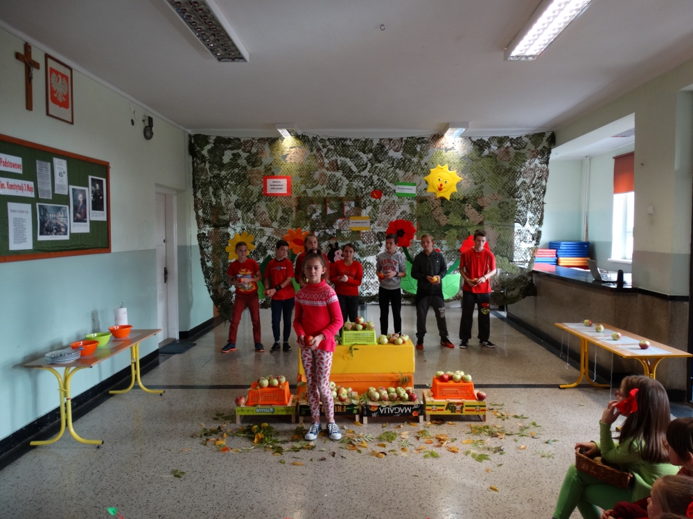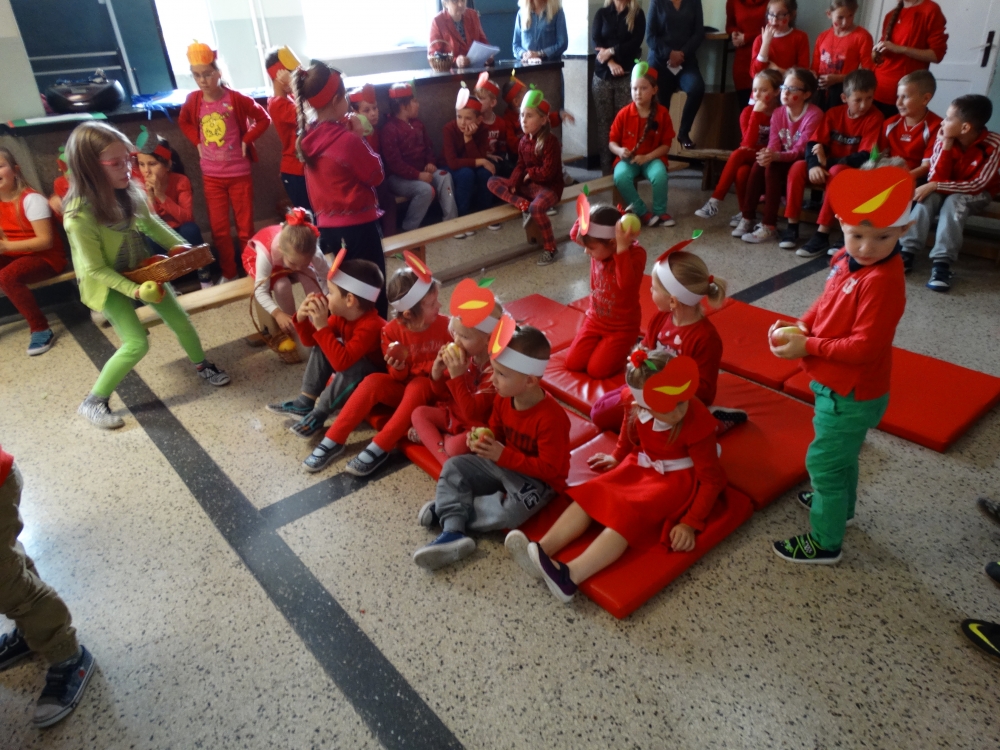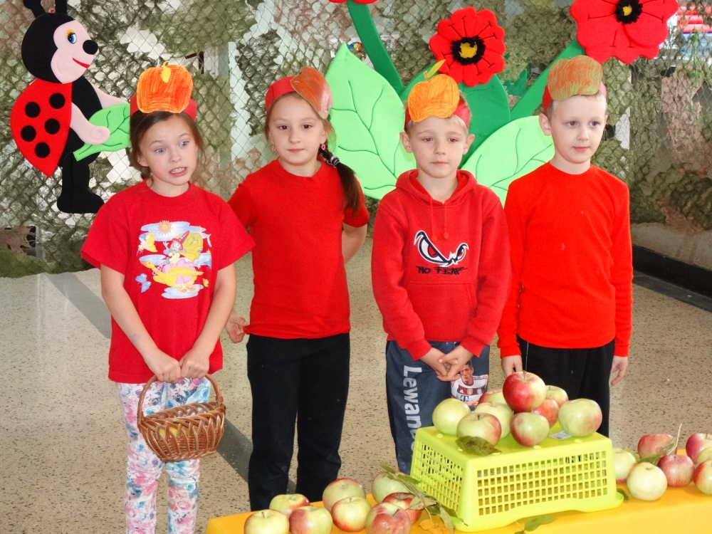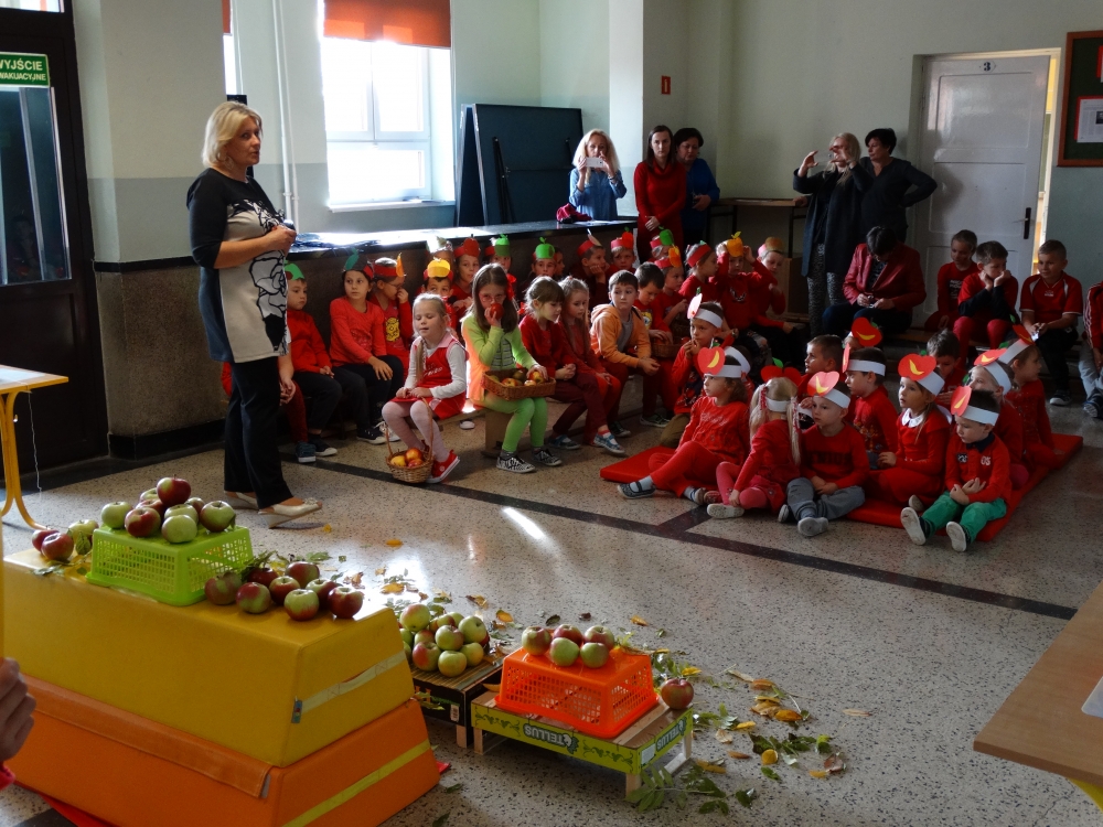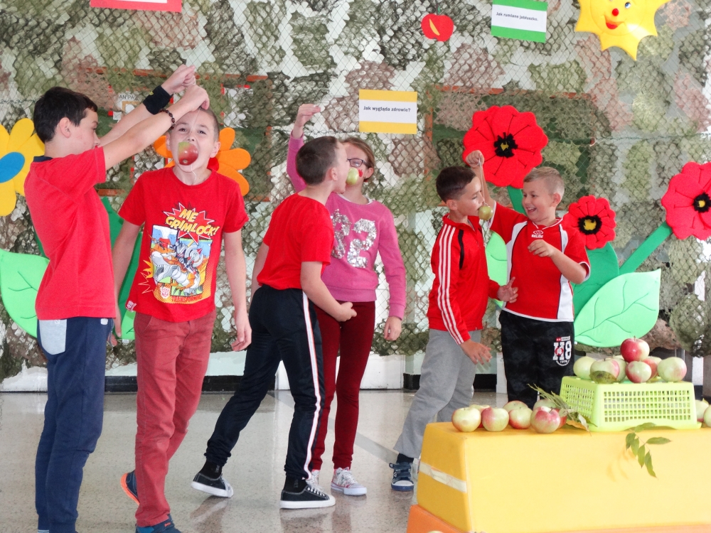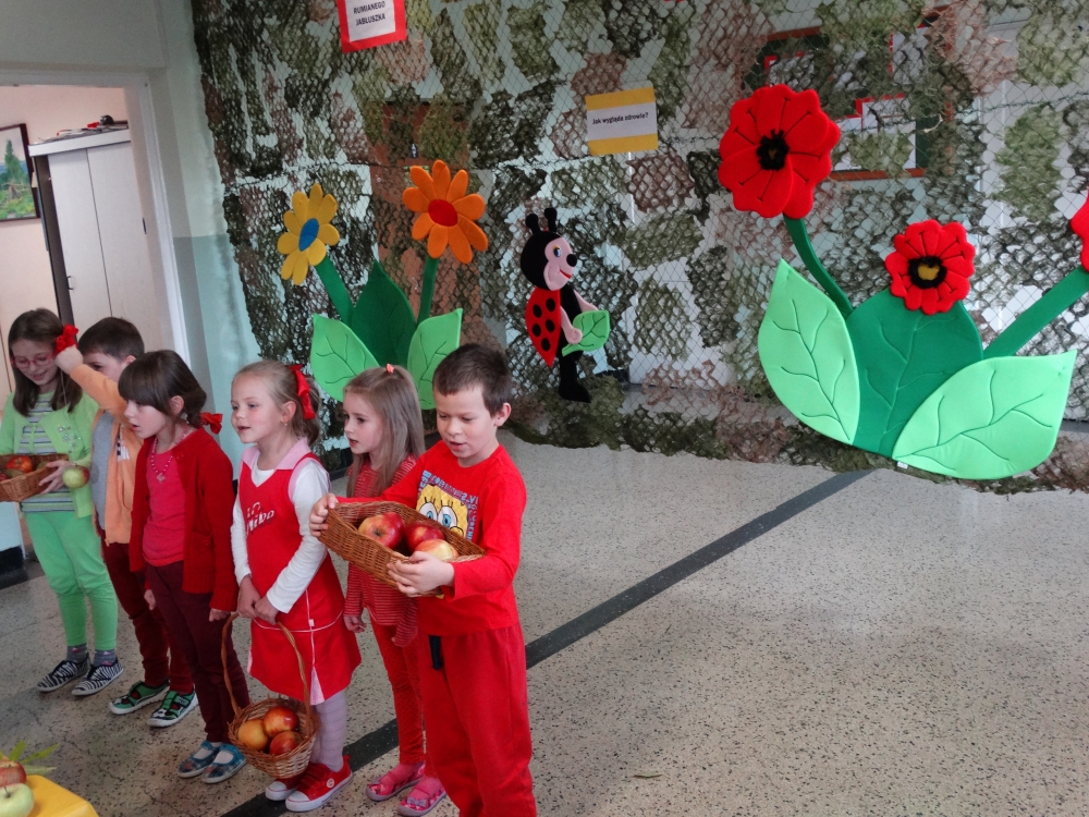 Tak o jabłuszku śpiewały dzisiaj dzieci podczas ŚWIĘTA RUMIANEGO JABŁUSZKA, które obchodziliśmy w naszej szkole z okazji ŚWIATOWEGO DNIA WALKI Z NADWAGĄ. Podczas spotkania uczniowie zaprezentowali przygotowane wiersze, rymowanki i piosenki o owocach oraz aktywnie uczestniczyli w konkursach i zabawach zręcznościowych. Każdy uczestnik miał możliwość poszerzenia wiedzy na temat walorów odżywczych i leczniczych jabłek. Wiemy, że jabłka są zdrowe. I zamiast chipsa, batonika, jabłuszko z koszyka!