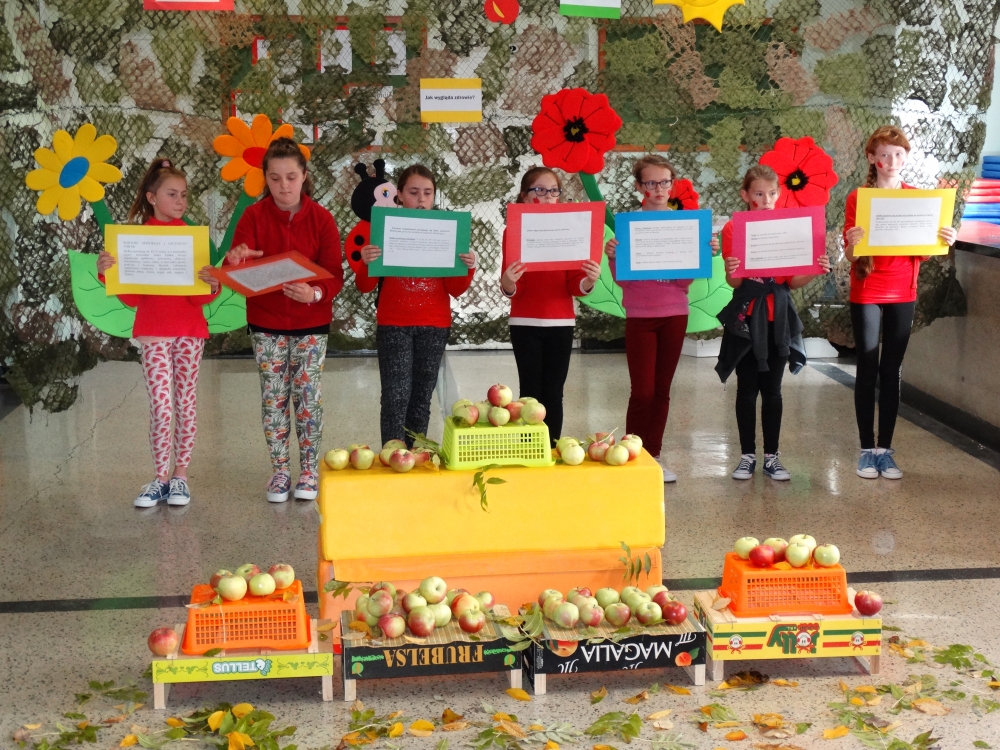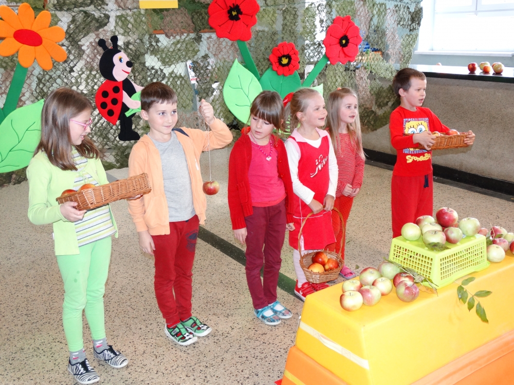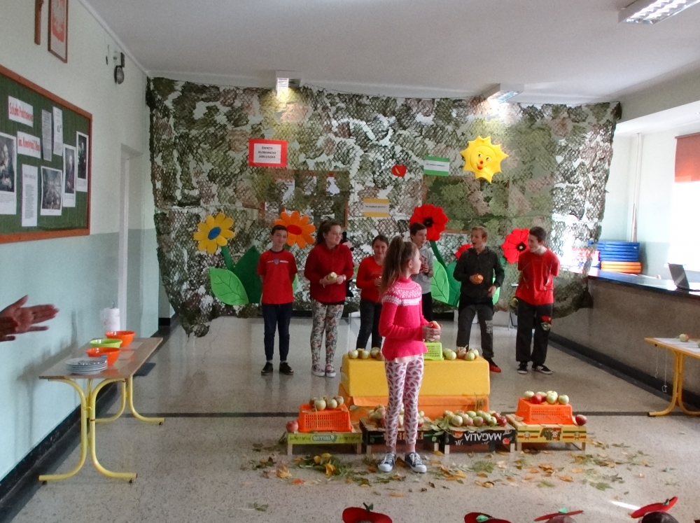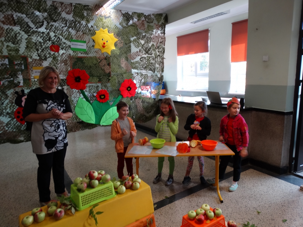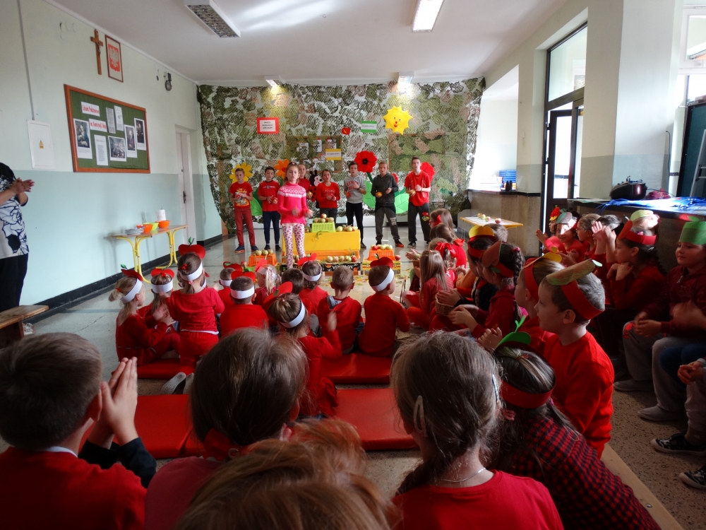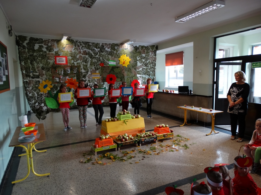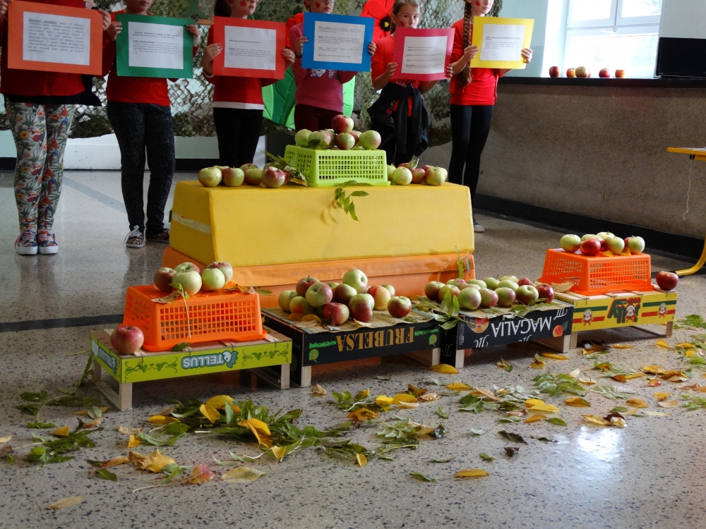 Tak o jabłuszku śpiewały dzisiaj dzieci podczas ŚWIĘTA RUMIANEGO JABŁUSZKA, które obchodziliśmy w naszej szkole z okazji ŚWIATOWEGO DNIA WALKI Z NADWAGĄ. Podczas spotkania uczniowie zaprezentowali przygotowane wiersze, rymowanki i piosenki o owocach oraz aktywnie uczestniczyli w konkursach i zabawach zręcznościowych. Każdy uczestnik miał możliwość poszerzenia wiedzy na temat walorów odżywczych i leczniczych jabłek. Wiemy, że jabłka są zdrowe. I zamiast chipsa, batonika, jabłuszko z koszyka!