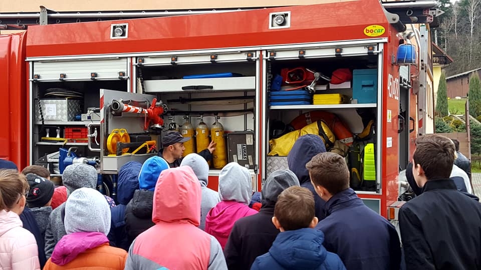 EWAKUACJA W SZKOLE- SPOTKANIE ZE STRAŻAKAMI