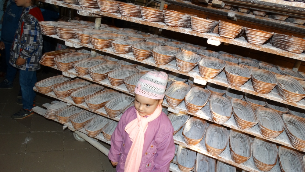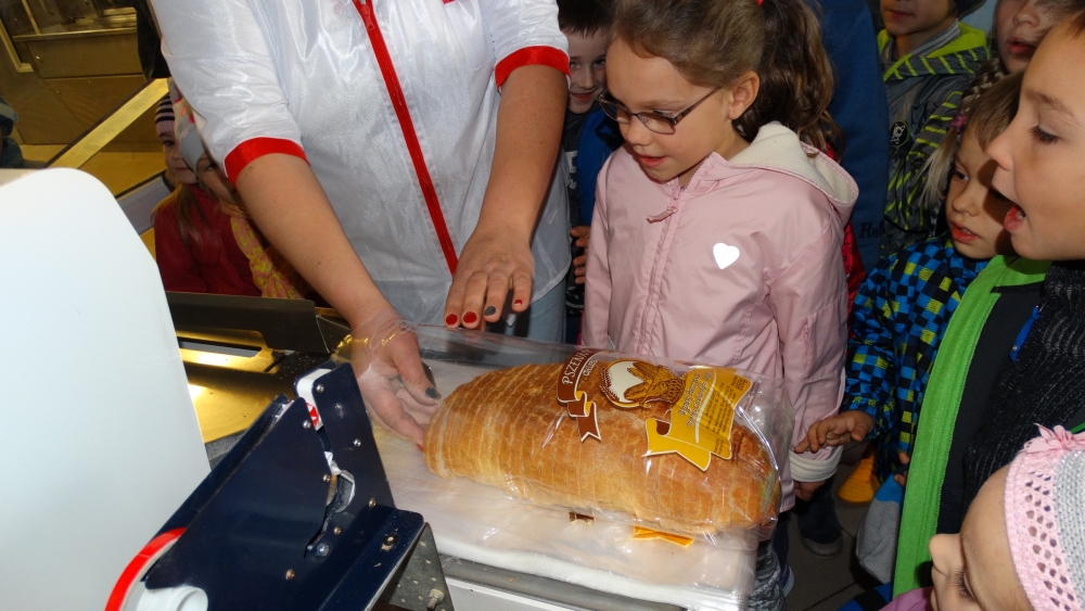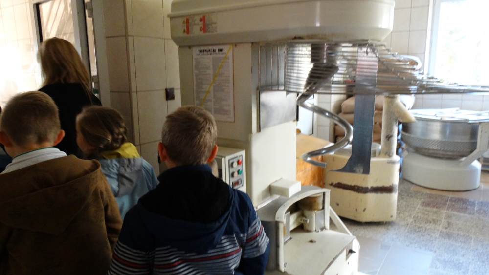 Podczas wycieczki dzieci zobaczyły jak wygląda piekarnia od środka. Z wielkim zainteresowaniem przyglądały się pracy piekarza, poznały etapy powstawania pieczywa oraz produkty potrzebne do jego wypieku. Zobaczyły nowoczesne maszyny, które pomagają w pracy piekarzowi a pani pracująca w piekarni służyła informacjami na temat wypieku chleba. Mieliśmy również okazję zwiedzić duże magazyny z workami mąki. W piekarni wszystko było ciekawe: ogromne misy na ciasto, wózki z upieczonym chlebem, krajalnica i wielkie łopaty do wysadzania pieczywa. Największe wrażenie wywarł na przedszkolakach ogromny piec, który miał wiele poziomych drzwiczek. Dowiedzieliśmy się w jakiej temperaturze i w jakim czasie pieczony jest chleb. Jednak najbardziej przyjemnym miejscem okazał się dział cukierniczy. Tutaj powstają pyszne ciasteczka, smaczne torty, jabłeczniki, serniki itp. Wycieczka po piekarni zakończyła się słodkim poczęstunkiem. Składamy serdeczne podziękowania Państwu Genowefie i Władysławowi Gawlikom za życzliwe przyjęcie, gościnność oraz za przekazanie informacji o tajnikach piekarskiego rzemiosła.