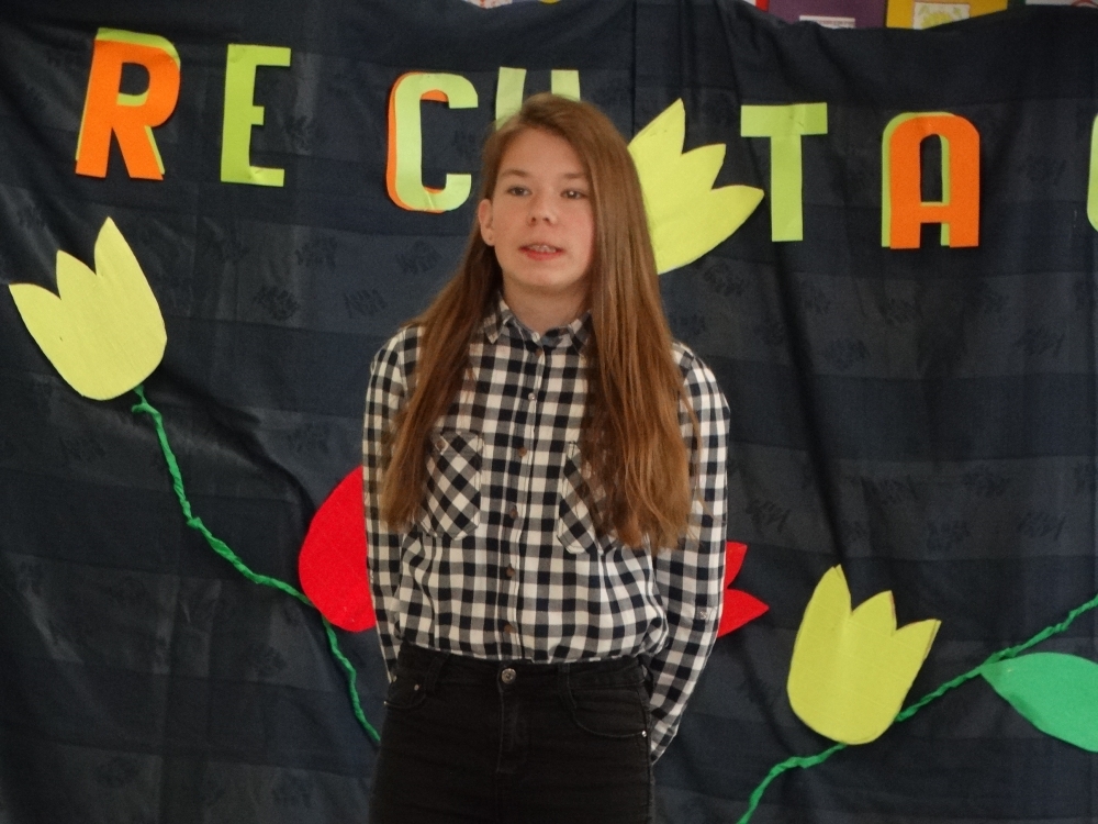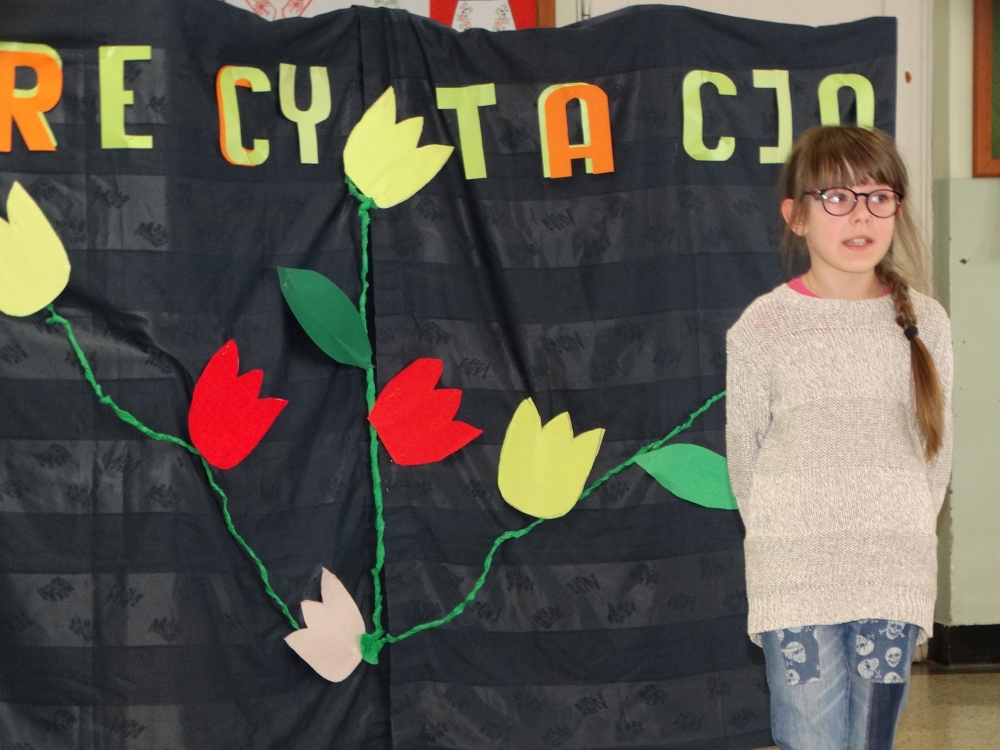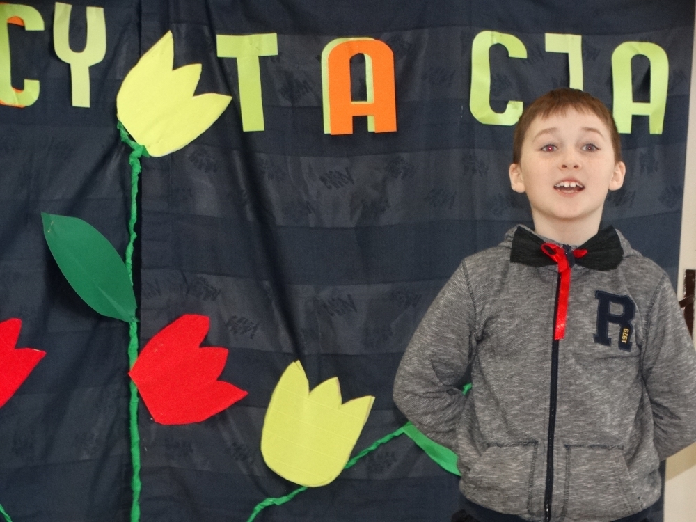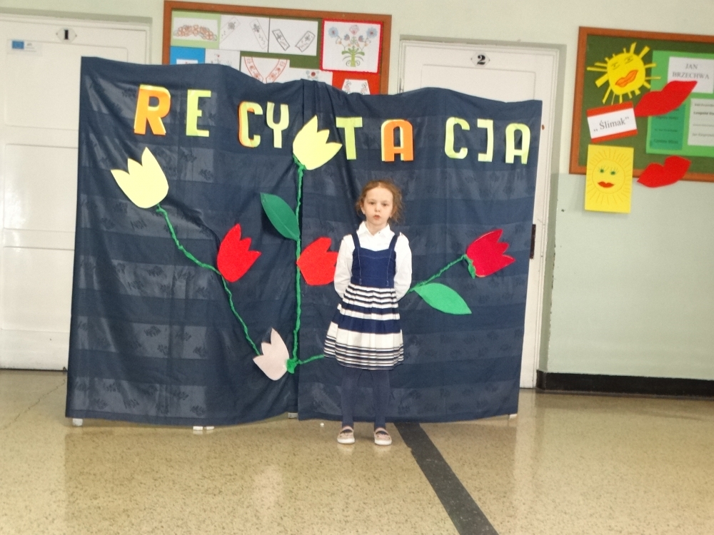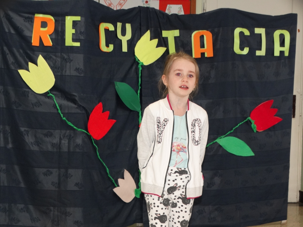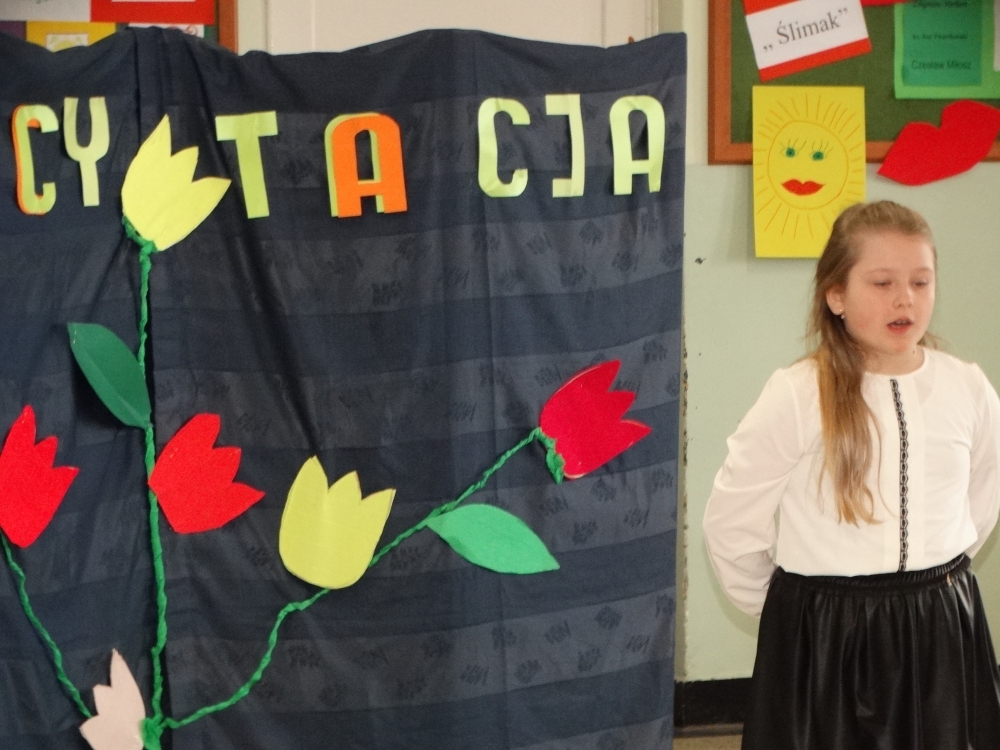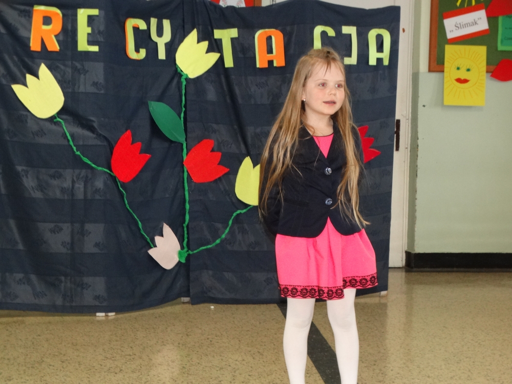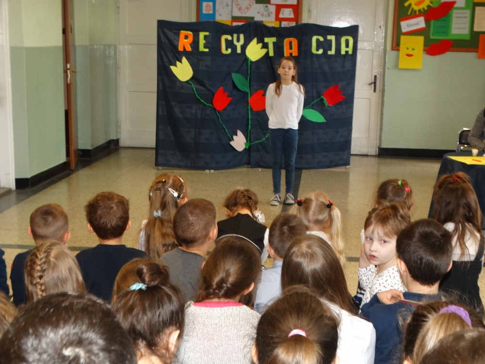 Uczniowie klas 0-7 przygotowali rożnorodne wiersze i zaprezentowali je przed jury i społecznością szkolną. Wysoki poziom jaki prezentowali recytatorzy sprawił jury nie lada kłopot. W końcu poznaliśmy zwycięzców : Aleksandrę, Miłosza, Gabrielę , Dominikę, Julitę , Julię , Arkadiusza, Marzenę, Dominikę, Agnieszkę , Ilonę . Brawo!!!