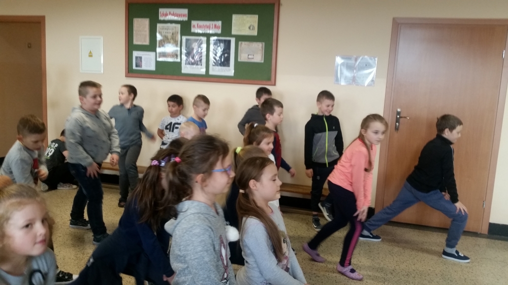 Jak co roku w okresie zimowym w naszej szkole ma miejsce akcja „ ROZTAŃCZONA PRZERWA”. W tym czasie członkinie SK PCK organizują podczas przerw śródlekcyjnych ćwiczenia ruchowe przy muzyce. Do prowadzenia ćwiczeń włączają również uczniów klas IV- VIII. Dynamiczna muzyka oraz ciekawe układy gimnastyczne zachęcają wszystkich, a nawet tych najmłodszych do aktywnego udziału. Tego rodzaju aktywność wzbudzała wśród uczniów ogromną radość i pogodny nastrój.