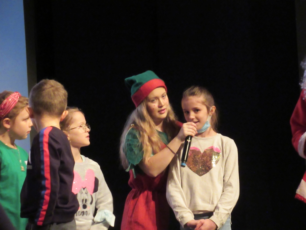 W poszukiwaniu Świętego Mikołaja uczniowie młodszych klas postanowili wyruszyć do Nowego Sącza. Poszukiwania okazały się skuteczne. Na scenę wielkiej sali kinowej wkroczył Mikołaj. Dzieci przywitały go bardzo radośnie, a on obdarował ich prezentami. Po wspólnej zabawie , wszyscy pełni miłych emocji i wrażeń obejrzeli film pt. CLIFFORD WIELKI CZERWONY PIES.