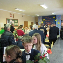 Na zakończenie dostojni goście zostali zaproszeni na poczęstunek przygotowany przez Radę Rodziców. Szczęśliwe i rozpromienione twarze Babć i Dziadków po raz kolejny dały wyraz tego, jak ważne są dla Nich chwile spędzone razem z wnukami. Te coroczne spotkania mają niepowtarzany klimat pełen wzruszeń i ciepłych uczuć. Są okazją do wspólnych rozmów i wspomnień. Dla uczniów są ważną lekcją miłości, szacunku i wdzięczności, które jesteśmy winni naszym bliskim oraz osobom starszym.