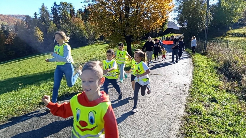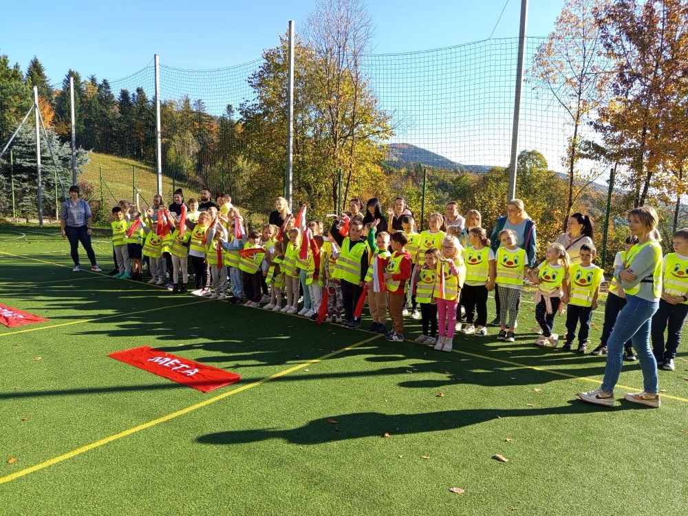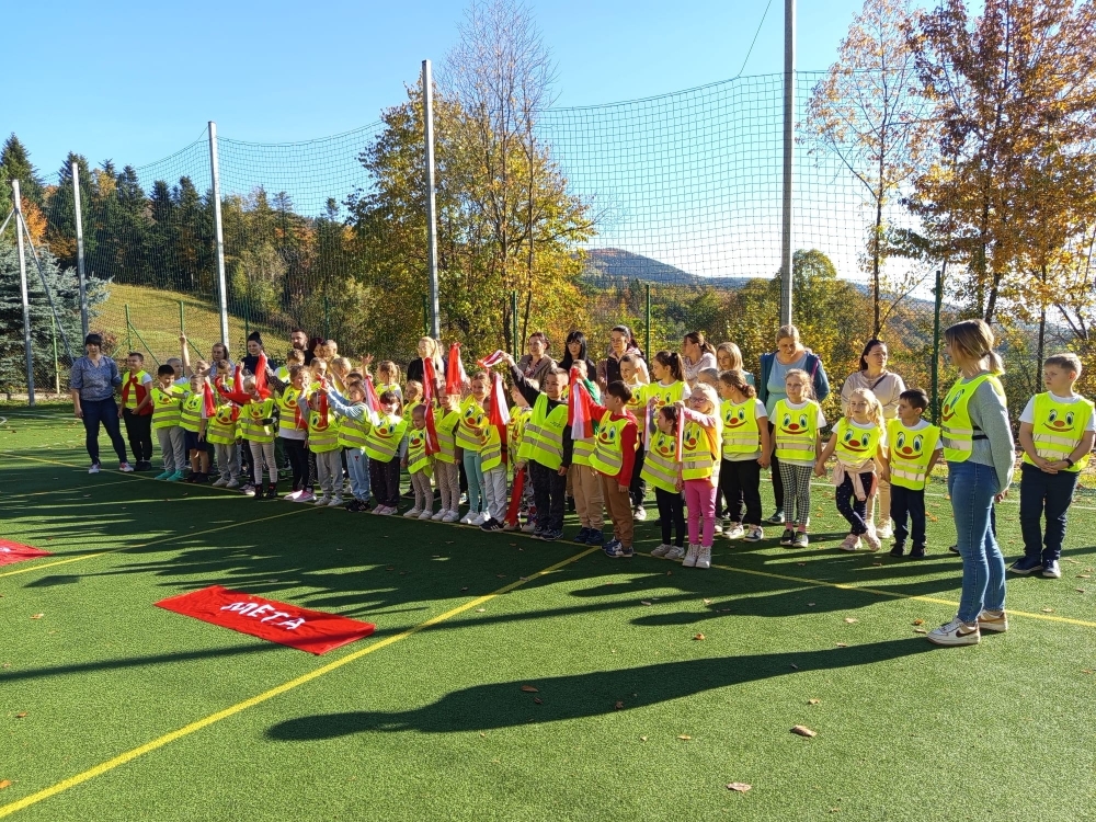 Jak co roku w naszej szkole odbyły się rodzinne biegi przełajowe. W wydarzeniu wzięły udział dzieci przedszkolne, uczniowie klas I–III, ich rodzice, a nawet babcie. Wszyscy z wielkim zapałem stanęli na starcie, by wspólnie pokonać trasę biegu.<br />