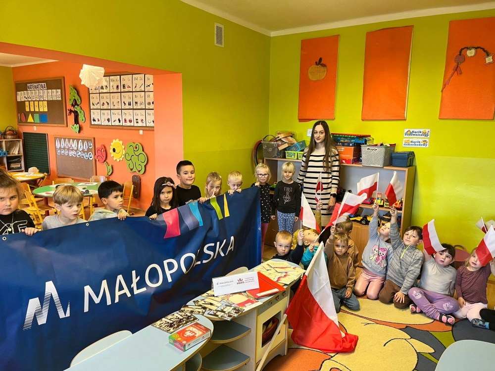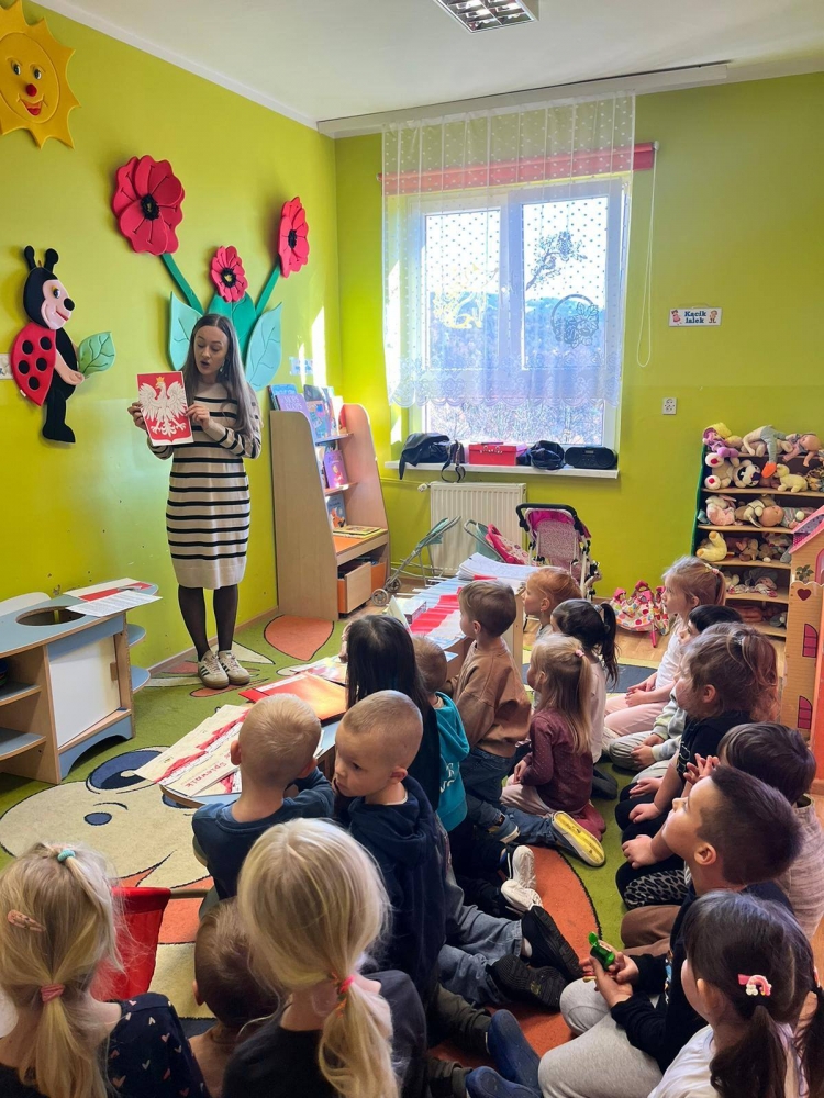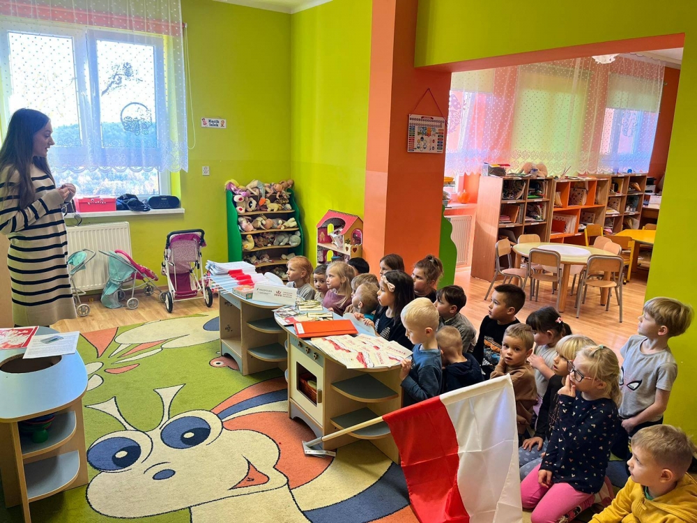 W listopadzie w oddziale przedszkolnym odbyła się wyjątkowa lekcja historii połączona z warsztatami patriotycznymi. Wśród najmłodszych gościła pani Aneta Faron ze Starostwa Powiatowego w Limanowej, która w ciekawy i dostosowany do wieku dzieci sposób przybliżyła im tematykę narodowych tradycji oraz symboli.<br />