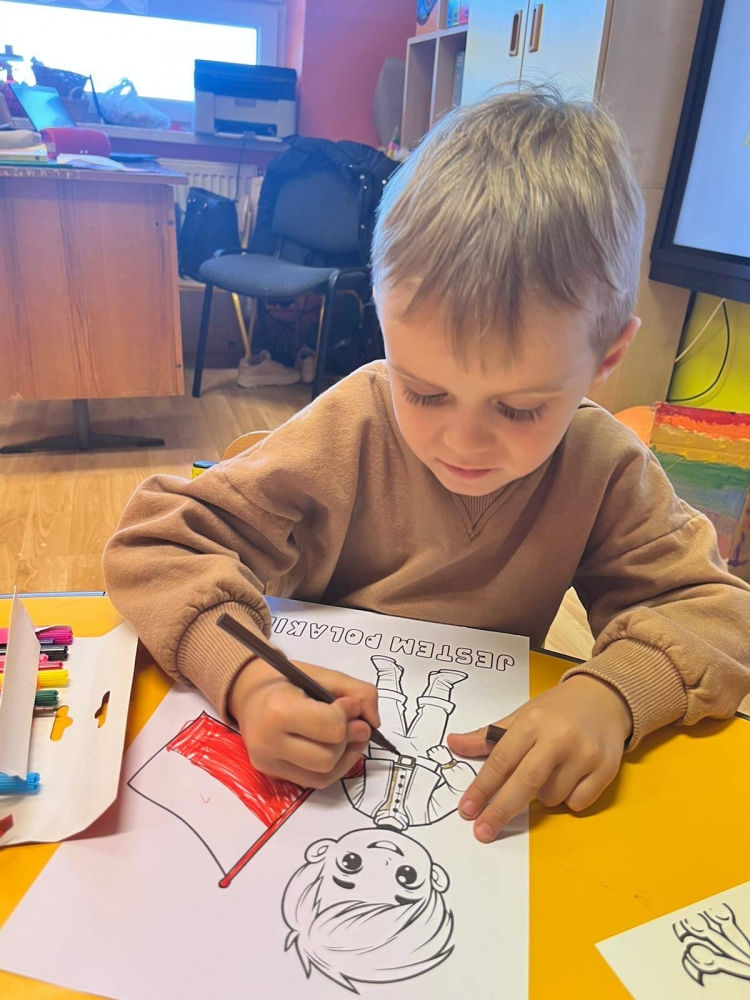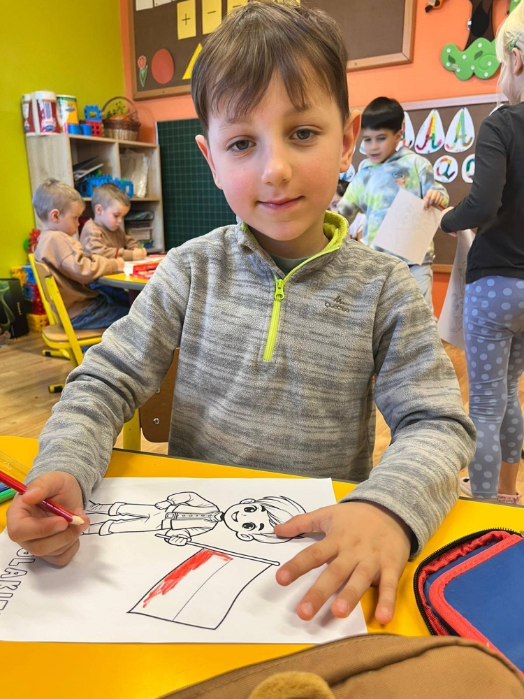Podczas zajęć przedszkolaki poznały najważniejsze polskie symbole narodowe, takie jak flaga, godło i hymn. Dzieci uczyły się również, jak prawidłowo zachować postawę podczas śpiewania „Mazurka Dąbrowskiego”, a następnie z dumą zaprezentowały zdobyte umiejętności, wspólnie wykonując hymn Polski.<br />