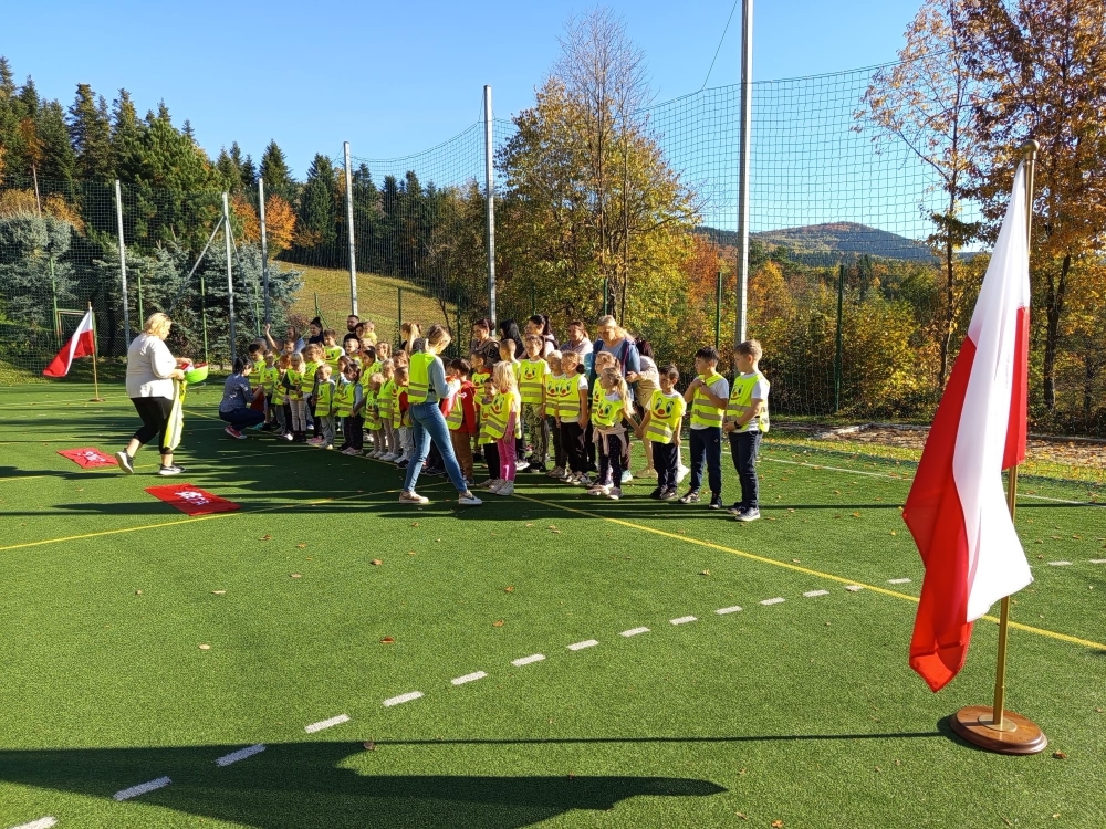 Jak co roku w naszej szkole odbyły się rodzinne biegi przełajowe. W wydarzeniu wzięły udział dzieci przedszkolne, uczniowie klas I–III, ich rodzice, a nawet babcie. Wszyscy z wielkim zapałem stanęli na starcie, by wspólnie pokonać trasę biegu.<br />