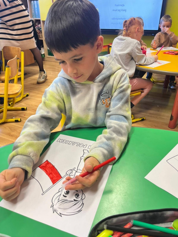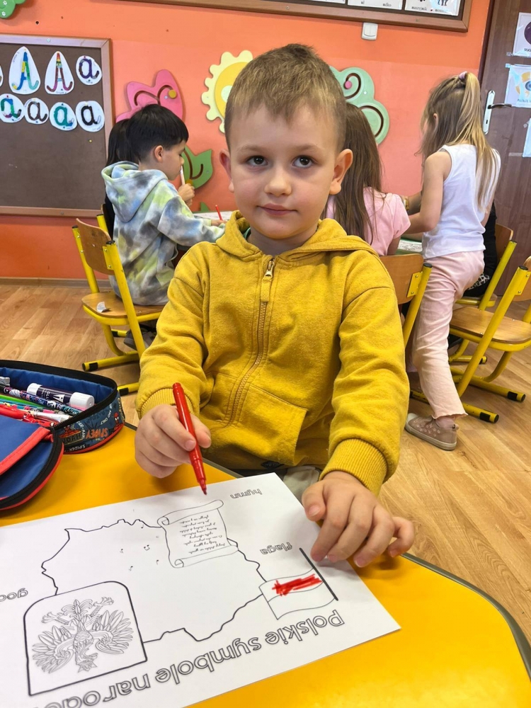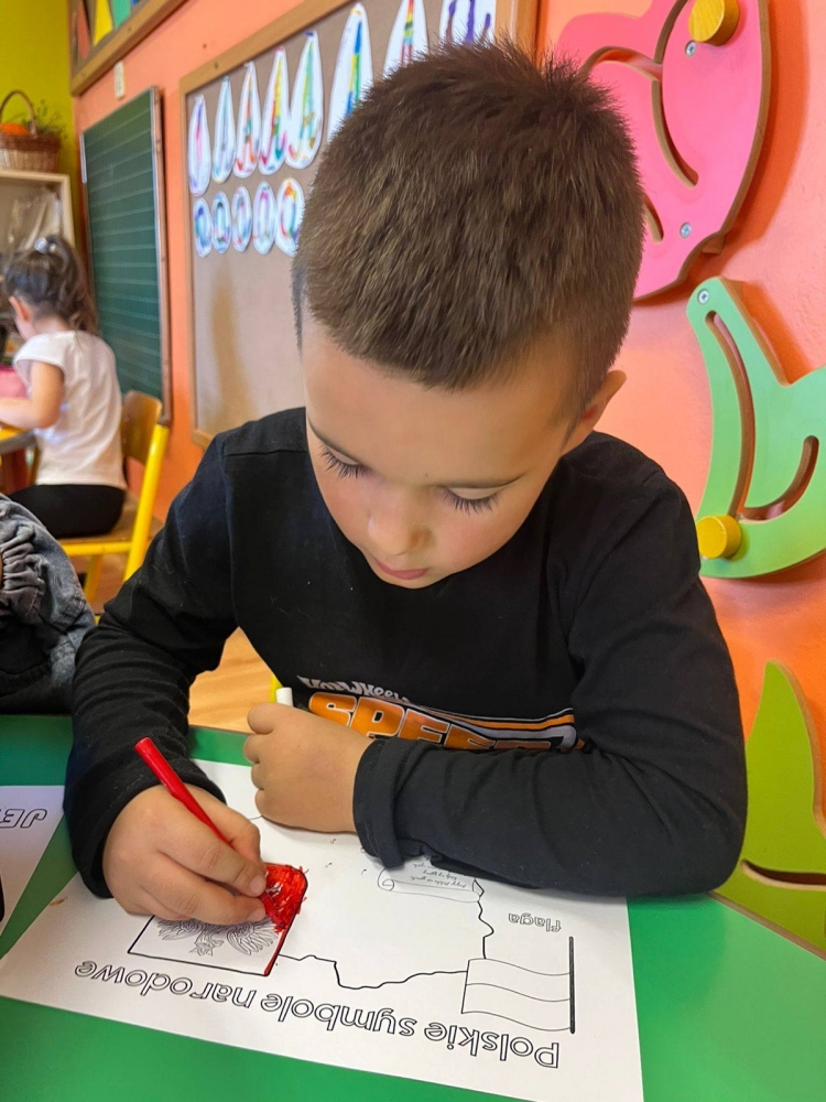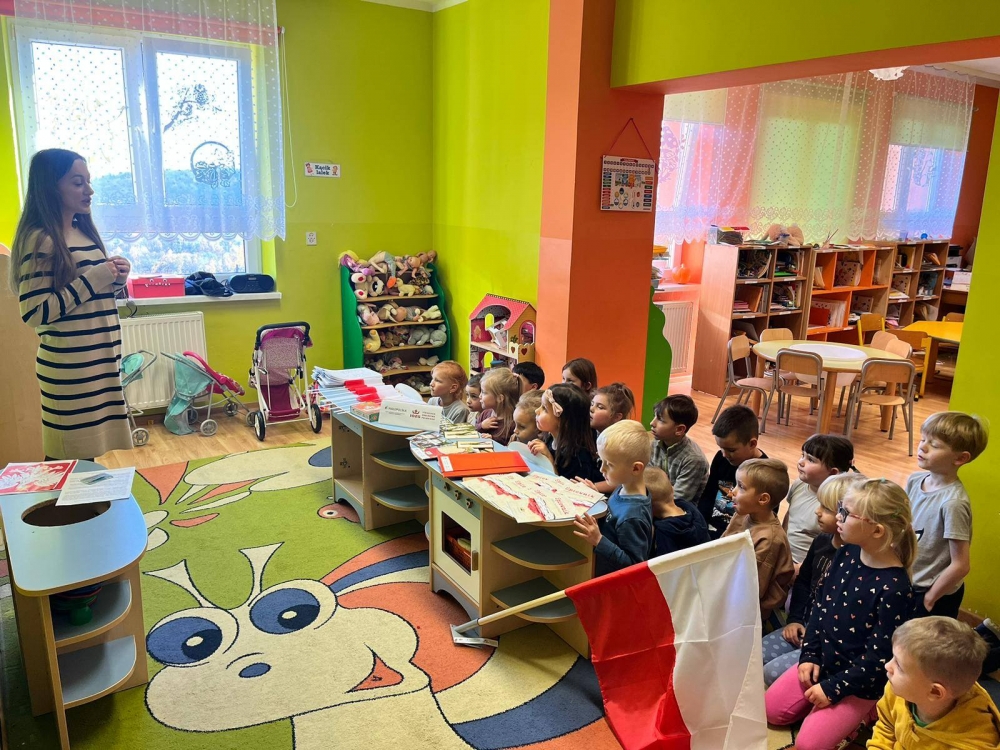 Podczas zajęć przedszkolaki poznały najważniejsze polskie symbole narodowe, takie jak flaga, godło i hymn. Dzieci uczyły się również, jak prawidłowo zachować postawę podczas śpiewania „Mazurka Dąbrowskiego”, a następnie z dumą zaprezentowały zdobyte umiejętności, wspólnie wykonując hymn Polski.<br />