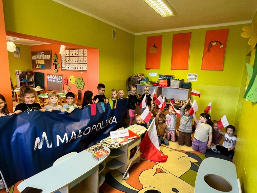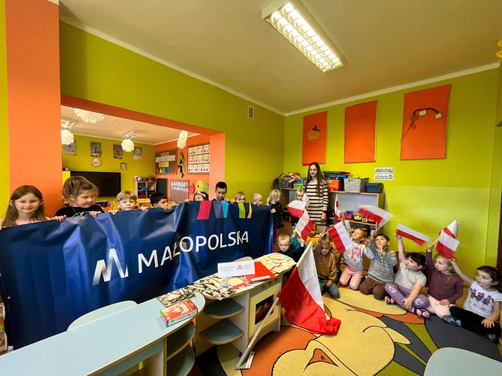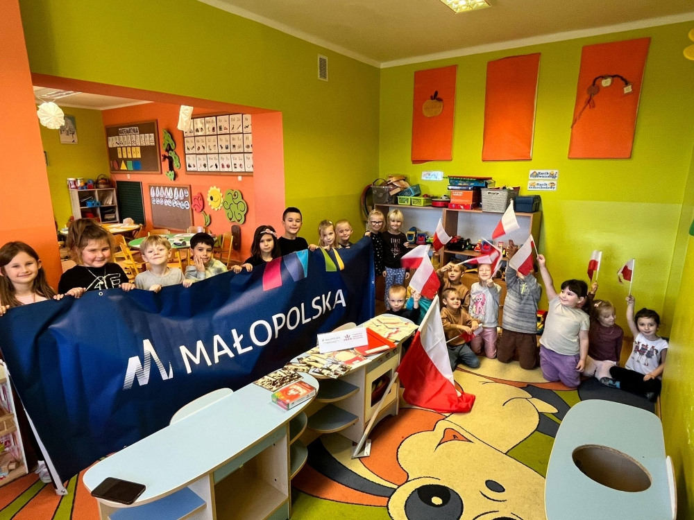 W listopadzie w oddziale przedszkolnym odbyła się wyjątkowa lekcja historii połączona z warsztatami patriotycznymi. Wśród najmłodszych gościła pani Aneta Faron ze Starostwa Powiatowego w Limanowej, która w ciekawy i dostosowany do wieku dzieci sposób przybliżyła im tematykę narodowych tradycji oraz symboli.<br />